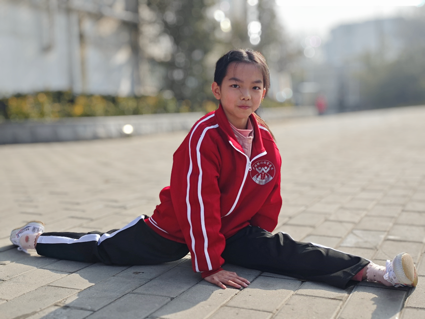 训练场上的蔡源圆,却透着一股不服输的韧劲。“源圆这孩子虽然年纪小、入校时间短,但训练态度特别认真,从不偷懒。”提起自己的学生,刘教练满是赞许,“她不仅自己刻苦钻研基本功,还特别热心,和同学们互帮互助,相处得十分融洽,是个懂事又上进的好孩子。”