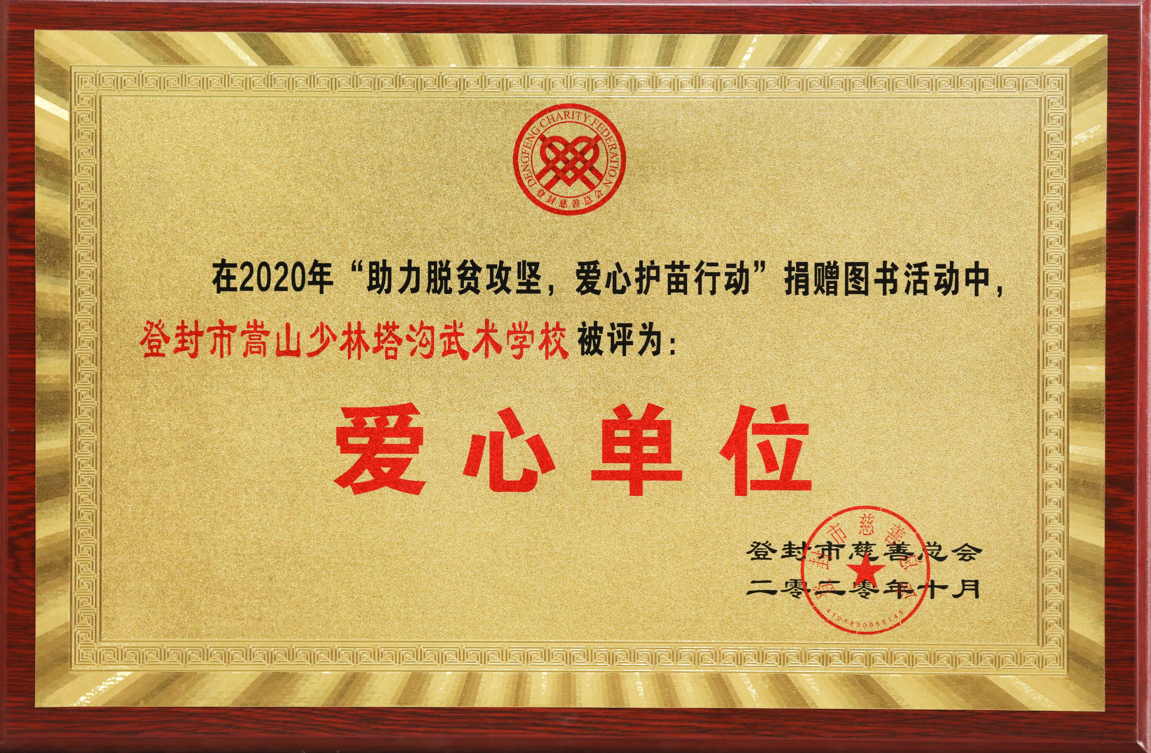 登封市嵩山少林塔沟武术学校被评为“爱心单位”