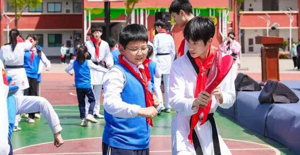 近日,中国跆拳道协会组织18名跆拳道奥运冠军、世界冠军、亚运冠军、全国冠军走进许昌杨根思小学,开展了一场丰富多彩的校园健身指导主题活动,塔沟武校45名功夫少年为该校的同学们奉献了一场精彩的武术表演。