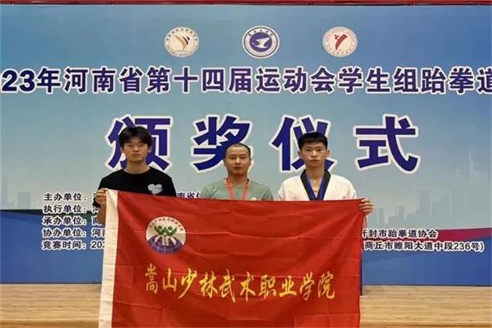 河南省第十四届运动会学生组跆拳道比赛暨河南省第十二届学生跆拳道比赛于2023年7月11日在商丘工学院拉开序幕,50多所高校,800多名队员同场竞技!本次比赛由河南省教育厅、河南省体育局主办,商丘工学院承办,少林塔沟教育集团嵩山少林武术职业学院文化传播系2名队员发扬顽强拼搏、坚韧不拔、勇往直前的体育精神,经过5天的激烈角逐,最终获得1个第一名,2个第五名的成绩。