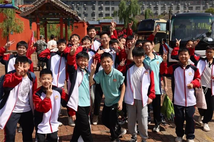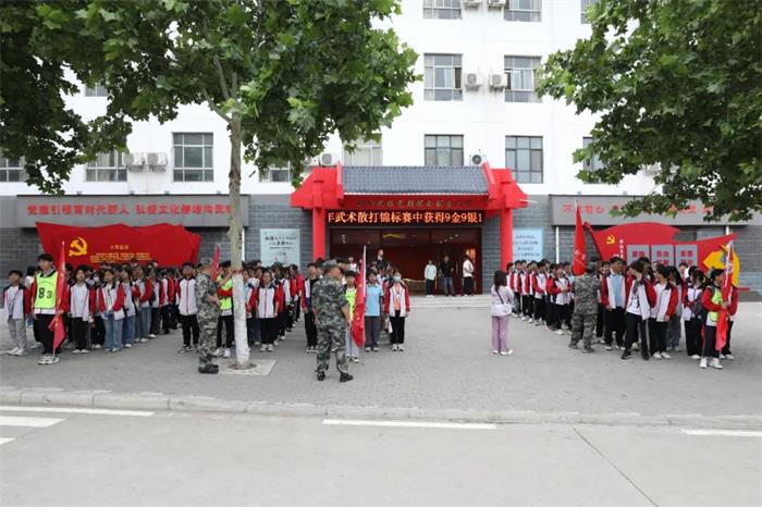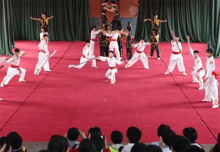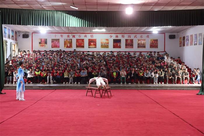 美好的时光总是短暂,最后,来自登封市直属第八初级中学的学员在依依不舍的告别中和塔沟武校武术艺术表演团学生合影留念。