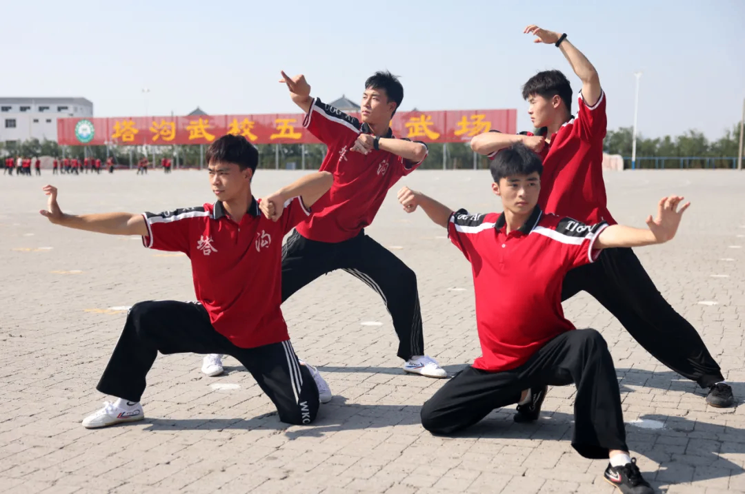 节目开始后,塔沟武校学员们手执太极扇,动作徐缓舒展,如行云流水般亮相。紧随其后,中国传统十八般兵器轮番登场:双钩灵动刁钻,大刀威猛劈砍,双鞭呼啸生风,三节棍刚柔并济,醉剑则于跌宕中尽显写意锋芒。