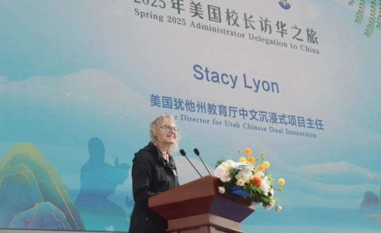 犹他州教育厅中文项目主任 莲芯玫(Stacy Lyon)在发言中特别提到,过去五年间犹他州与嵩山少林武术职业学院共同举办的线上夏令营课程,深受学生和家长的喜爱,这些成功的合作经历让犹他州教育界对与学院的进一步合作满怀信心。她表示,希望借此机会深入了解学院在武术教育与文化传承等方面的独到之处,为两方学生创造更多学习与成长的机会。