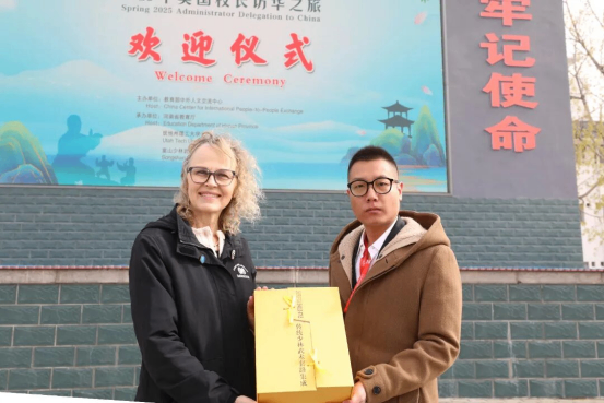 在热烈而温馨的氛围中,常务副院长刘少勇与校长团代表莲芯玫(Stacy Lyon)互赠礼物,这些饱含文化特色的礼物,象征着双方友谊与合作的美好愿景。