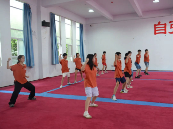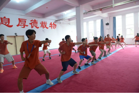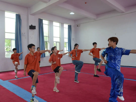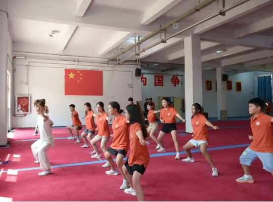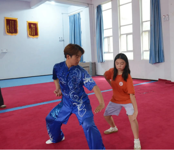 活动核心环节是体验少林功夫。在我院优秀学生教练的指导下,营员们学习了少林武术的基本礼仪(抱拳礼),练习了基础的手型(拳、掌、勾)、步法(弓步、马步),并尝试学习了简洁有力的少林拳入门组合。初次尝试虽显生疏,但每位营员都全神贯注,认真学习,努力体会着少林功夫内外兼修的精髓。亲身挥洒汗水的实践,让他们真切感受到了少林功夫的独特魅力、习武的艰辛与乐趣,也为他们理解中华文化中“刚健有为”、“自强不息”的精神提供了生动的注脚。