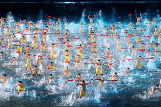 “龙舟节目的演员人数最多,有225人,而且身高要在1米75以上,还要搭建三层人塔,这对学生力量的要求非常高,最终确定了335人的表演团队。”本次演出团队负责人郭振举介绍,“虽然节目形态并不都是以武术形式呈现,但每个人都有着扎实的武术功底。”