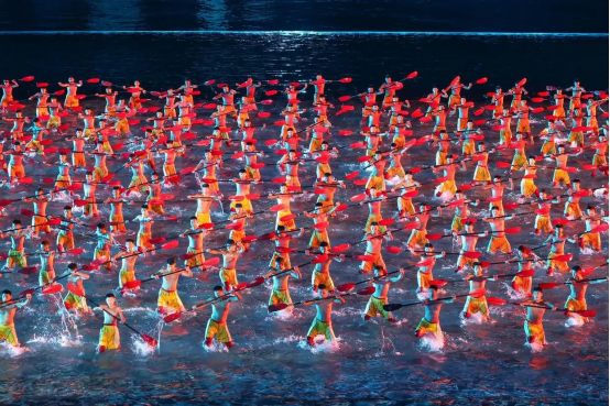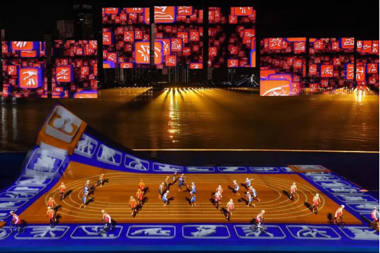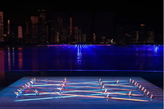 本届全运会闭幕式以“星辰大海”为主题,巧妙融合海天幕景与城市风光,打造出六个意境深远的表演段落。其中,段落四《巅峰的时刻》无疑是全场最大亮点——舞台首次实现完全沉入水中,225名塔沟功夫小子化身“中华龙舟队”踏浪登场。他们以气势磅礴的功夫动作模拟龙舟竞渡,刚劲有力的拳脚、整齐划一的阵型展现出运动之美、速度之美与力量之美;节目尾声,学员们迅速叠起三层人塔,勾勒出栩栩如生的“中华龙舟”造型,生动诠释了大湾区同心协力、奋勇争先的时代精神,引得现场掌声雷动。