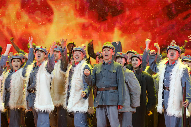 建党95周年晚会上侯勇与少林塔沟武校演员情景表演《信仰·长征》 (1)