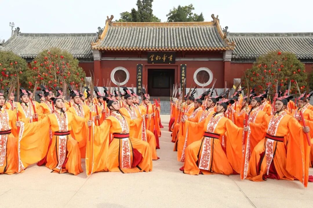 2025年3月31日,乙巳年黄帝故里拜祖大典上,塔沟武校66名学员身着祭祀礼服,演绎《八佾舞》、《乐舞敬拜》、《天地人和》三个节目。依周礼列阵执羽籥,踏歌拜叩重现先秦雅乐气象,在庄严肃穆的氛围中续写华夏寻根共鸣。