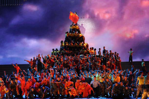 建党九十周年文艺晚会昨日首演 少林功夫演绎“风雨同舟