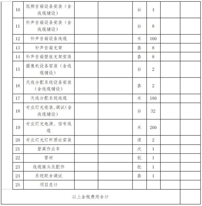 5、项目概况:本次拟增加现有舞台顶光4道和侧光南北各1道,新灯光系统应具备电脑编程,可根据不同节目设置不同程序,提升演出效果(需配合学校录制10首灯光秀)。