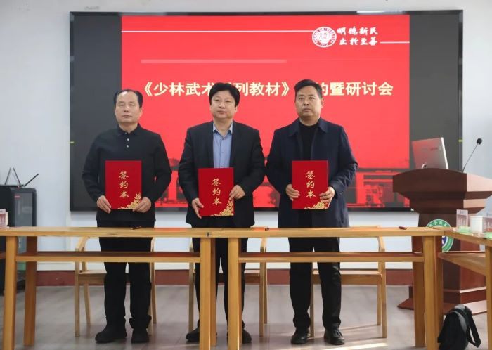 全运会武术散打冠军受河大表彰 |《少林武术系列教材》签约共探发展