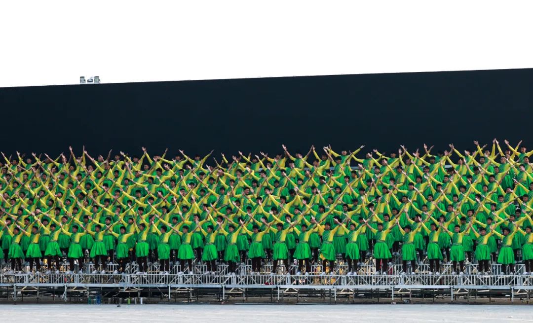 八百名塔沟小子组成武术节开幕式“背景墙”