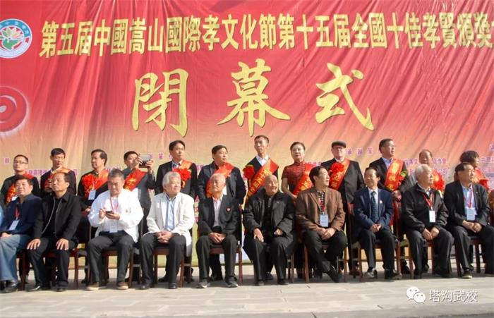 第五届中国嵩山国际孝文化节 暨第十五届全国十佳孝贤颁奖大会圆满落幕 10月11日,为期四天的第五届中国嵩山国际孝文化节暨第十五届全国十佳孝贤颁奖大会在少林塔沟武术学校圆满落幕。