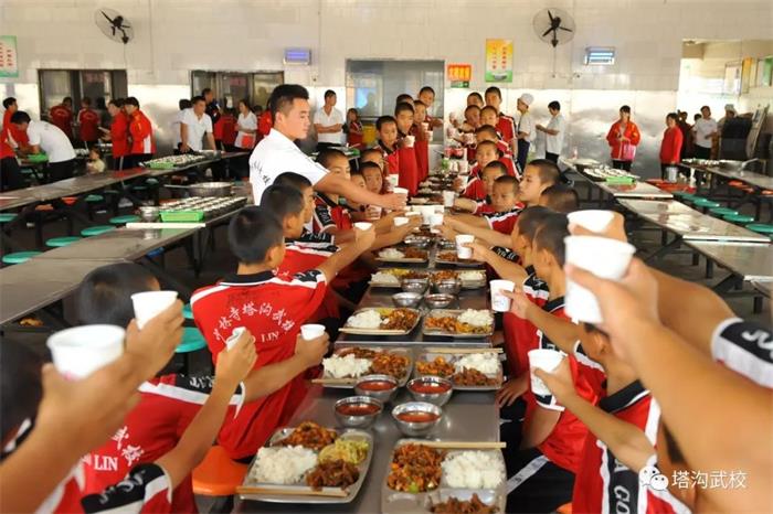 塔沟武校师生乐享中秋免费午餐! 金秋九月,塔沟武校全体师生迎来了一年一度的中秋节,9月24日中午,集团领导为全校三万五千多名师生安排了盛大的中秋顿餐活动,全体师生欢聚一堂,餐厅内笑语不断,