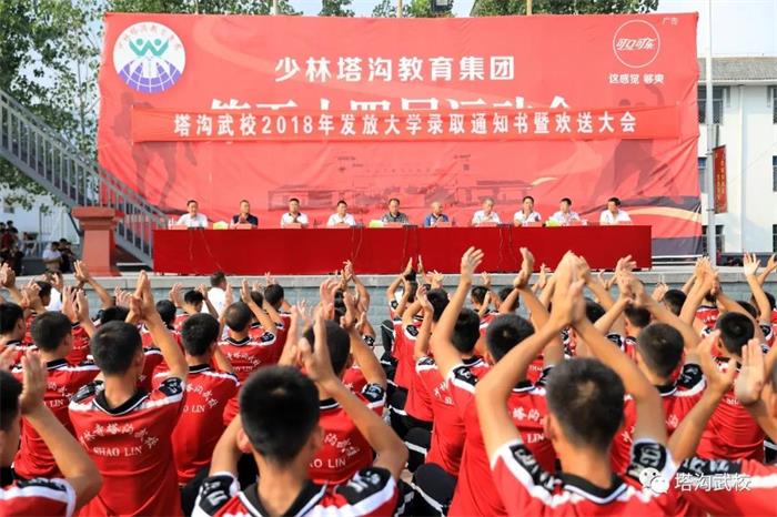塔沟武校体院补习班222名同学被全国各高等院校录取 盛夏时节,魅力塔沟。8月11日下午,塔沟武校为体院补习班222名考入全国各高等院校的学子隆重举行通知书发放大会,欢送他们步入大学校门,开启