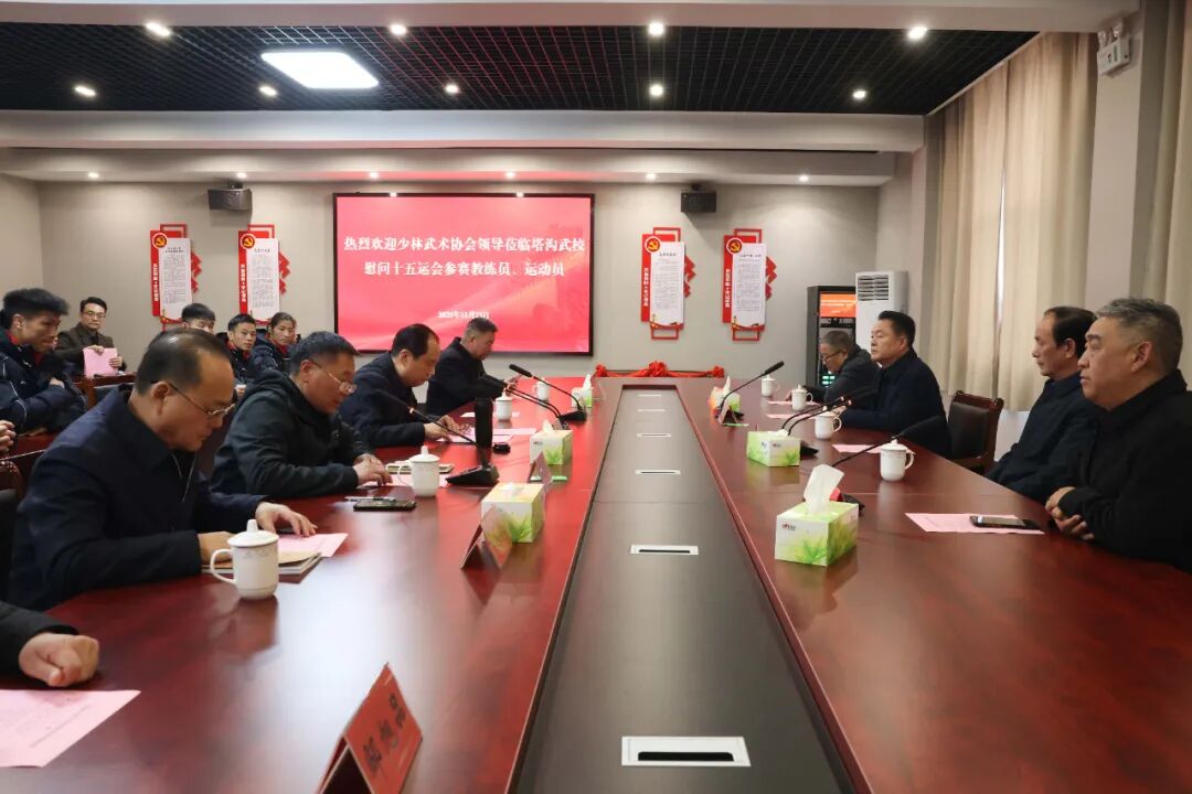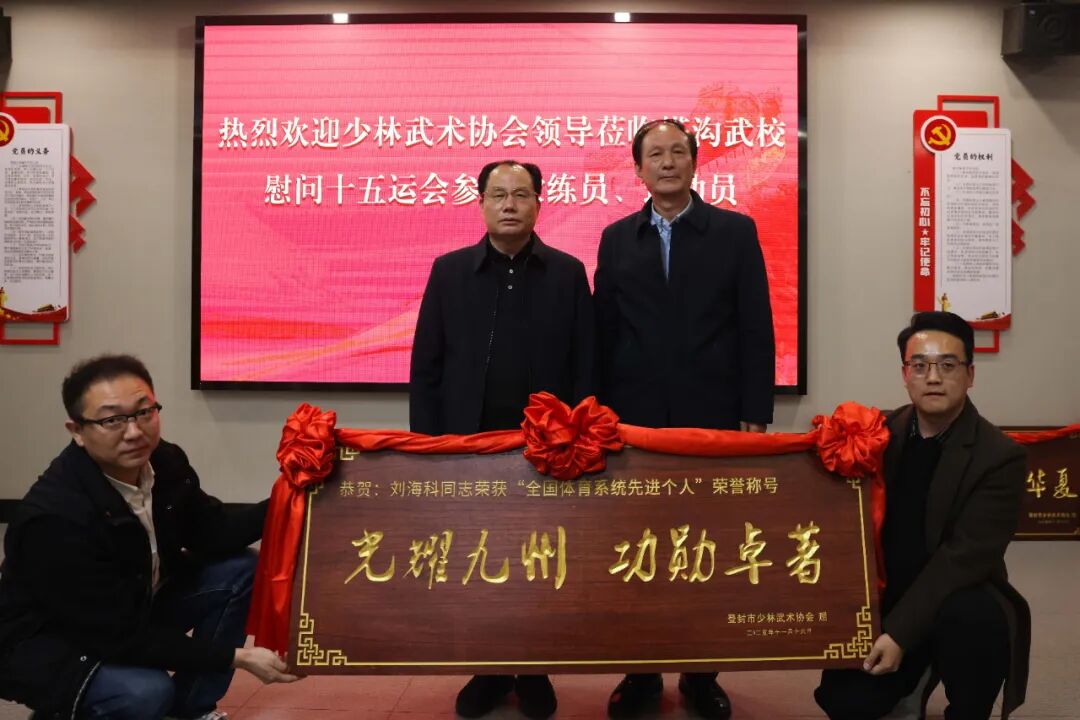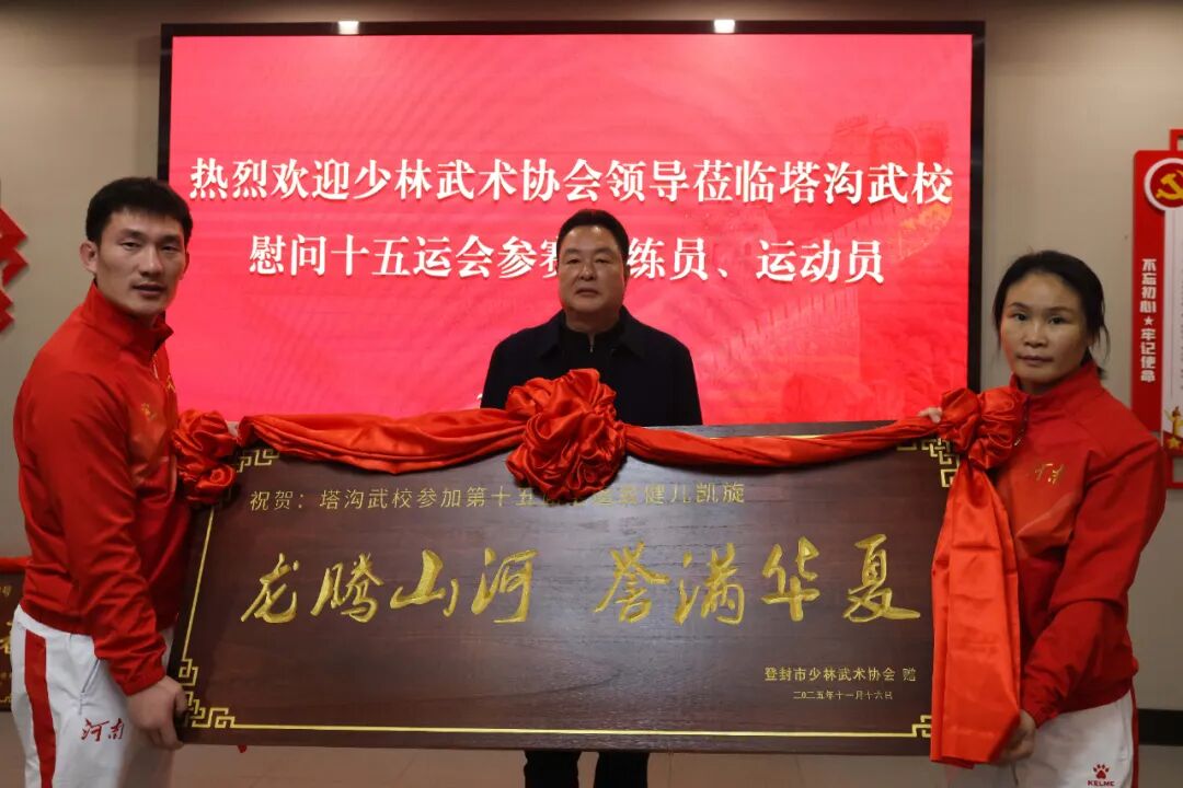 2025年11月23日上午,登封市少林武术协会领导一行专程莅临塔沟武校,亲切慰问了荣获“全国体育系统先进个人”称号的河南省散打队总教练、塔沟武校党委书记兼总教练刘海科,以及在全运会上取得优异成绩的武术散打、拳击、跆拳道项目运动员与教练员。