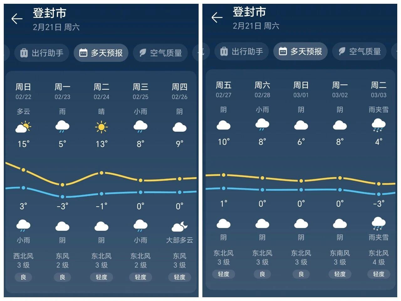 注意气温变化,及时增添衣物。出行时及时关注天气情况,谨慎选择在雨雪雾冰等极端天气出行,同时切记“春捂秋冻”,不要频繁脱衣。后附河南登封未来10日天气情况及学校定位。