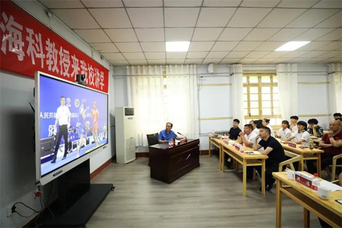 下午三点,作为河南大学武术学院硕士生导师,刘海科教授为河南大学武术学院师生进行了专题讲座,他以“河南武术散打队管理、训练、竞赛一体化之研究”为主题,从“思想建设”“团队协作”“执行力”“退役安置”四个方面进行经验分享。塔沟武校师生始终以“忠、孝、仁、义、礼、智、信、勇、勤、恒”为行为准则,不断提高队伍凝聚力、执行力,从而打造队伍竞争力。在运动队梯队建设方面,既要发挥现役运动员能力,又要未雨绸缪培养新人、做好退役队员安置工作,促进了运动队管理和训练工作健康有序的发展。在比赛方面,竞技体育是一项复杂的系统工程,比赛期间做好竞赛周期全面控制至关重要。针对赛前、赛中、赛后三个阶段要制定详细可行的参赛预案,助力选手在赛场上赛出水平与风格,勇创佳绩。