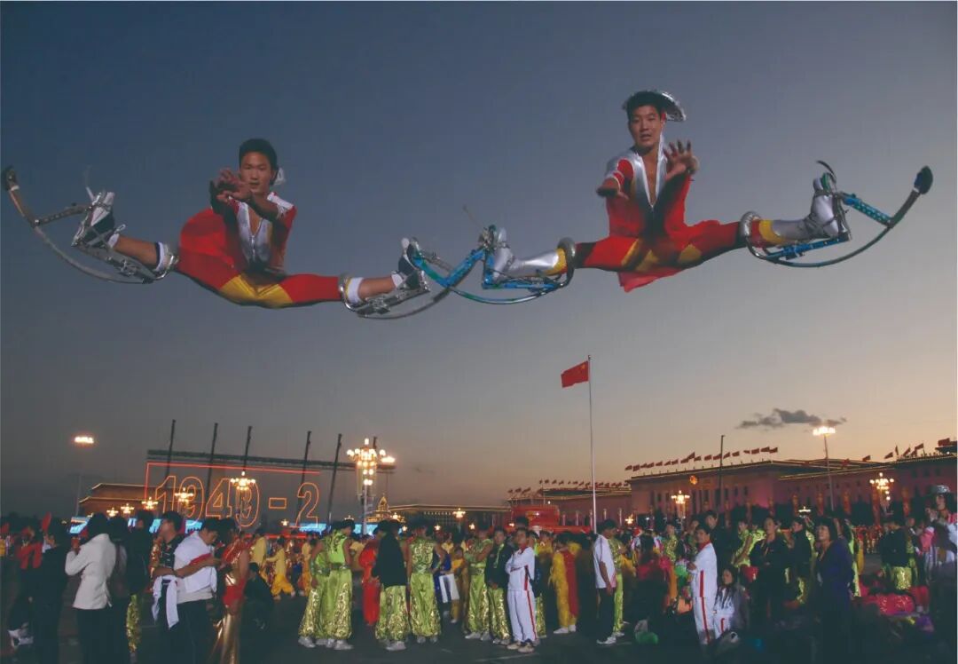 2009年国庆60周年,塔沟武校200余名学员扛起“五重精彩”的重任:阅兵式河南彩车上,8名学员演绎的太极拳行云流水,延续着北京奥运会上征服世界的少林风采;焰火晚会中,少林拳刚劲威猛、牧羊鞭响震长空,曾惊艳奥运的《弹跃龙》再度腾空;更令人动容的是,舞蹈《阳光路上》作为一项全新挑战——功夫小子们化身舞者,靠的是“能吃苦、善突破”的精气神。 6月高温集训时,学员们顶着烈日反复打磨动作,汗水浸透训练服却没人停下,休息时互相擦汗鼓劲,眼神里满是对国庆盛典的憧憬。“教练,我能行”“为了祖国荣誉,我能坚持”。这些发自内心的热忱与担当,让组委会领导给塔沟武校的孩子们点赞:“把喜庆气氛演绎得淋漓尽致”。 盛世华诞举国同庆 十年后,2019年国庆70周年,塔沟武校1080名师生再赴盛会,以《东方雄狮》惊艳长安街。180名“小狮子”翻滚跳跃,360个“大狮子”与绣球相映舞动,四层人塔瞬间拔地而起,寓意“中国雄狮已然觉醒”。15岁的靳启升为站上8米高的“塔尖”,用杯子练平衡、克服恐高,只为7秒攀爬、10秒举牌的完美亮相;9岁的邱楷阳每天跟着“大狮子”飞奔,虽然比练武还累,却笑称“这是一辈子的荣誉”;北京籍学员彭思潮封闭排练数月,连家人都未见一面,只说“要为祖国争光”。这份坚守换来群众游行指挥部的感谢信,称赞他们“讲政治、讲奉献,彰显过硬素质”。 从60周年的“太极生风”到70周年的“雄狮醒世”,变的是节目形式,不变的是塔沟人“为国奉献”的初心。他们把武术的豪迈、少年的赤诚,融入祖国庆典的每一个瞬间,用行动证明:爱国从不是口号,而是高温下的坚持、伤痛中的坚守,是把个人力量汇入祖国发展洪流的担当。这份塔沟精神,终将随国庆盛典的记忆,激励更多人以奋斗之姿,为祖国的明天添砖加瓦。