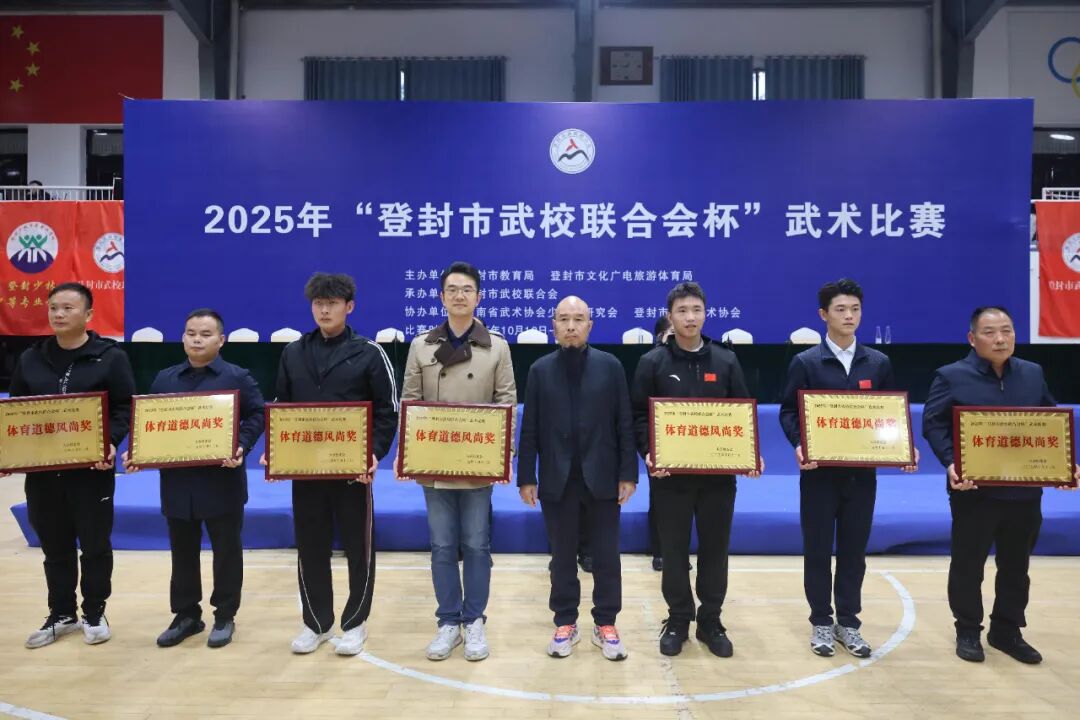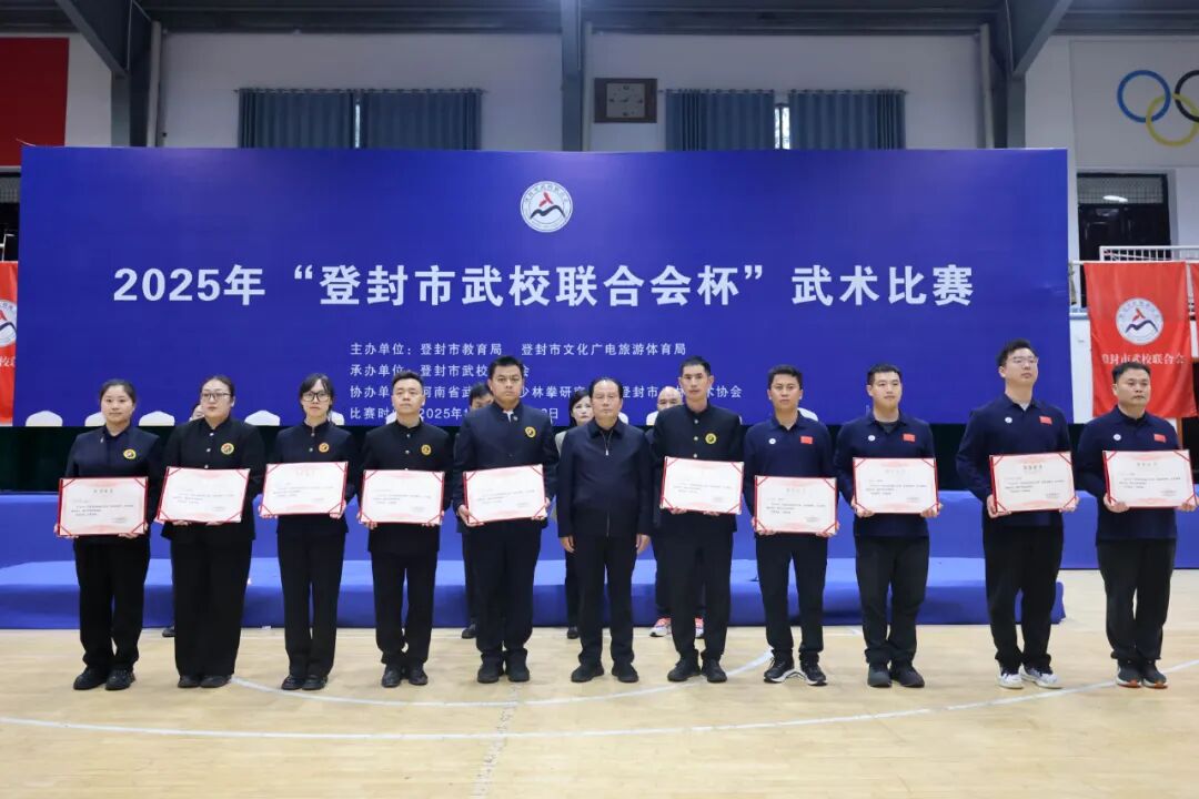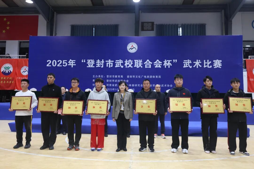 10月12日下午,2025年“登封市武校联合会杯”武术比赛在河南体育学院登封校区体育馆圆满落下帷幕。登封市教育局党组书记、局长马宝仓,登封市武术学校发展中心主任王凌燕,登封市武校联合会会长刘海科等领导出席闭幕式,全市20所武校校长、23支代表队2226名参赛队员及赛事工作人员参加活动,塔沟武校荣获集体项目(器械)金奖和突出贡献奖,少林中专荣获集体项目(拳术)金奖和优秀组织奖。 本次赛事自10月10日开幕以来,历时3天,2226名武者同台竞技,参赛规模较首届增长45%,创登封市级武术赛事新高。比赛期间,各参赛队伍秉持“以武会友、共同进步”宗旨,运动员们以刚柔相济的招式、虎虎生风的拳脚展现扎实功底,既诠释了“尚武崇德”的中华武术精神,也集中检验了登封武术教育的教学成果,实现“赛风文明、竞争有序、成果丰硕”的预期目标。 闭幕式上,总裁判长郑跃峰首先宣读大赛成绩。 随后进入颁奖环节,刘海科为10名“优秀裁判员”颁奖,表彰其专业执裁保障赛事公平。 王凌燕为6个“集体项目获奖”队伍、10支“优秀组织奖”单位授奖,肯定团队协作展现的武校风貌。 马宝仓为7支“突出贡献奖”单位颁奖,致谢各方对赛事筹备、组织保障的全力支持。 登封市武校联合会副会长刁山多为7支“体育道德风尚奖”运动队颁奖,弘扬赛场内外的武德精神。据悉,个人单项金、银、铜奖奖牌及证书赛后将由学校统一领取。 马宝仓在闭幕辞中指出,登封作为少林武术发源地,20所武校的十万余名师生已将少林功夫传播至全球80多个国家和地区。本次赛事的成功举办,再次实践了“党委主导、政府牵线、协会搭台、武校受益”的模式,并彰显了“同源同宗、共生共荣”的理念。各武校要以此为新起点,深化教学改革,培养更多德才兼备的武术人才;广大运动员要将拼搏精神融入日常,为传承中华优秀传统文化贡献力量。